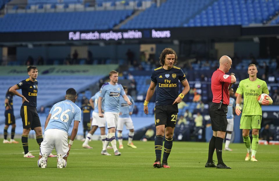 Pre Arsenal sa začal zápas nešťastne, pre zranenia totiž museli opustiť ihrisko Grant Xhaka a Pablo Mari. Domáci v ďalšom priebehu prvého polčasu nevyužili množstvo šancí, no v druhej minúte nadstaveného času sa ujala strela Raheema Sterlnga, ktorý využil zaváhanie Davida Luiza.