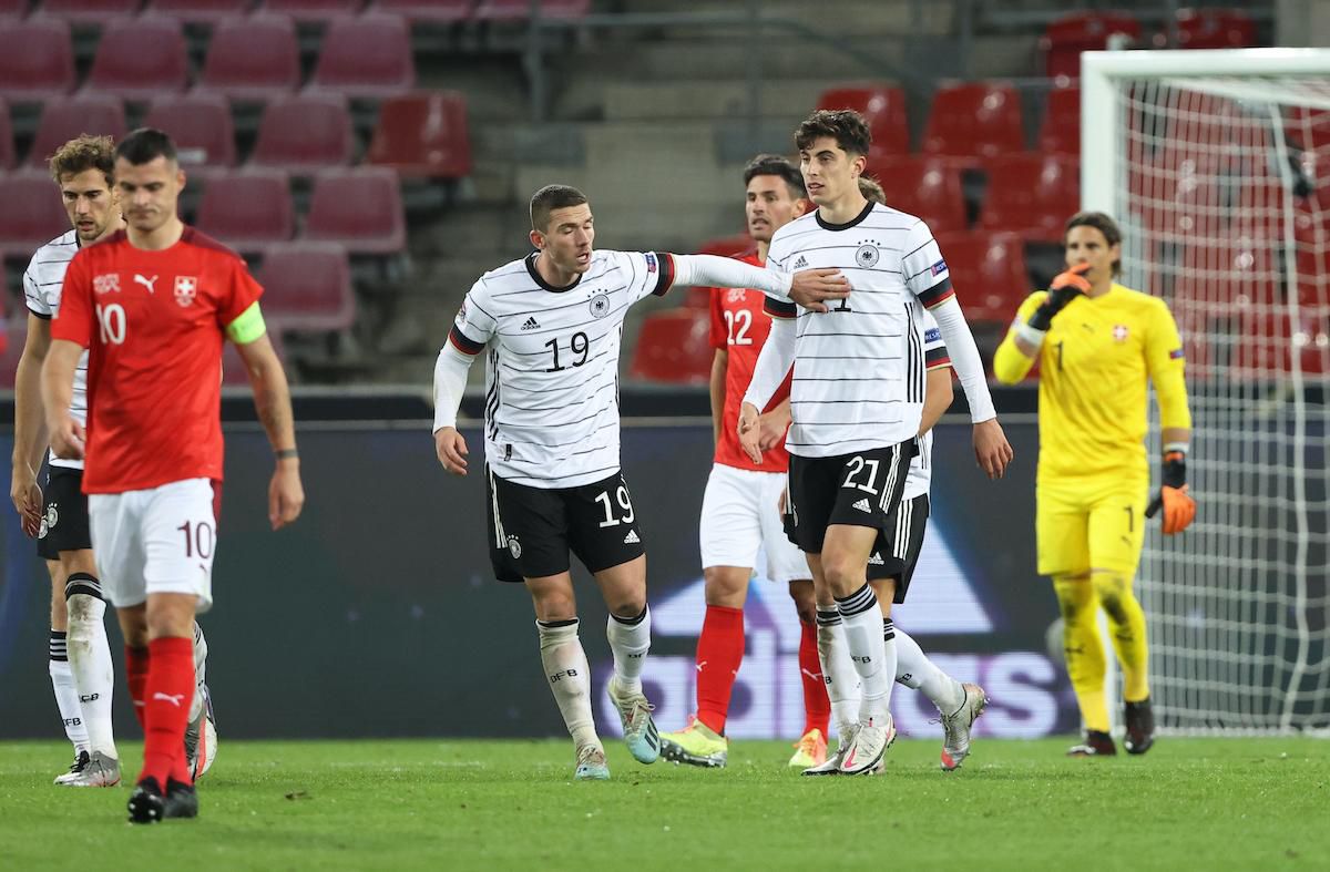 Onedlho po zmene strán mali Nemci šancu vyrovnať, Kai Havertz sa uvoľnil proti dvom protihráčom a jeho prízemný tečovaný pokus zastavila až žrď. Ten istý hráč sa zakrátko dočkal, v 55. minúte zachytil rozohrávku hosťujúcich obrancov, vrútil sa do šestnástky a prekonal aj brankára Yanna Sommera. Rovnovážny stav však vydržal iba dve minúty, v nemeckej šestnástke to opäť zaškrípalo, Haris Seferovič neskóroval ani na dva razy, no odrazenú loptu napálil do siete Gavranovič a pridal svoj druhý zásah v zápase. Gólová prestrelka pokračovala, o ďalšie tri minúty našiel Werner v šestnástke Sergea Gnabryho a ten pätičkou upravil na konečných 3:3.