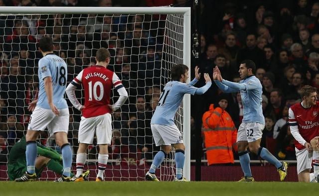 V druhom nedeľňajšom zápase zvíťazili hráči Manchestru City na štadióne Arsenalu Londýn 2:0. Domáci hrali už od desiatej minúty bez vylúčeného stopéra Koscielneho, čo hostia využili a po góloch Milnera a Džeka viedli už do polčasu 2:0. V 75. minúte sa síce sily na ihrisku vyrovnali, keď videl červenú aj Kompany, no Arsenal už s výsledkom nič nespravil.