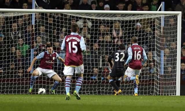 Až prišiel nastavený čas prvého polčasu, v ktorom sa obrovskej hrúbky dopustil domáci kapitán Ciaran Clark. Edin Džeko mu vypichol loptu a z okamžitého prečíslenia udrel Argentínčan Carlos Tévez. Keďže do konca stretnutia už gól na štadióne Villa Park nepadol, všetky tri body teda putovali do Manchestru. Desať zápasov pred koncom aktuálneho ročníka Premier League stráca City na Manchester United z druhej priečky naďalej dvanásť bodov a „The Villans“ ostávajú na zostupovej osemnástej pozícii.Výsledok dohrávky 28. kola Premier League: