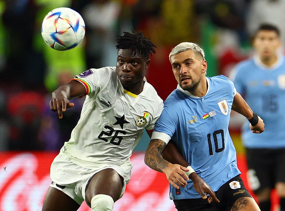 Tímy na seba narazili na MS prvýkrát od pamätného štvrťfinále turnaja v JAR 2010, ktoré rozhodla úmyselná ruka v pokutovom území Luisa Suareza a nepremenená penalta Asamoaha Gyana v nadstavenom čase predĺženia. Ghana vtedy prišla o historický zápis a nestala sa prvým africkým mužstvom v semifinále svetového šampionátu. A nepremenená jedenástka bola osudom afrického tímu aj v Katare, z bieleho bodu tentokrát neuspel v 21. min André Ayew. Penaltu odpískal rozhodca Daniel Sibert až po konzultácii s videoasistentom. Jordan Ayew v 15. min vystrelil spoza šestnástky, brankár Rochet loptu vyrazil, no potom fauloval dorážajúceho Kudusa. Čiarový rozhodca zdvihol zástavku, keďže uvidel stáť Andrého Ayewa pri strele svojho brata v ofsajde pred brankárom súpera, no VAR odhalil, že to o milimetre nebola pravda. Útočník katarského Al Saddu pri penalte zadrobčil a napokon nechal vyniknúť brankára Nacionalu Montevideo.