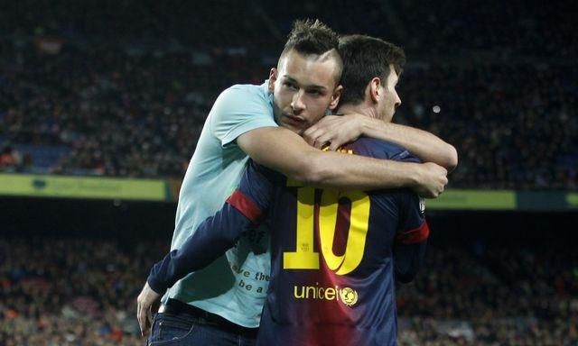 Argentínčan je v súčasnosti najoslavovanejším futbalistom planéty a záujem o jeho osobu je pochopiteľne obrovský. To sa potvrdilo aj v stretnutí Barcelony s Atléticom Madrid (4:1), keď v samotnom závere zápasu si Messi pri postrannej čiare vymenil loptu s Thiagom Alcantarom a zrazu sa na trávniku objavil fanúšik, ktorý si to namieril rovno k Argentínčanovi. Messi to riskol a ostal na mieste. Fanúšik našťastie nebol agresívny a svojho idola len objal. Vzápätí sa ho ujali stewardi a fanúšika so splneným snom odviedli preč.Lionel Messi je už však na podobné situácie zvyknutý, keďže sa mu to nestalo prvýkrát. V auguste si v medzištátnom priateľskom zápase s Nemeckom na trávniku podal s jedným fanúšikom ruku a v stretnutí s Mexikom potešil malého chlapca dokonca autogramom, či len prednedávnom s Messim tešil z premenej penalty nie len Alexis, ale aj "utečenec" z tribúny...