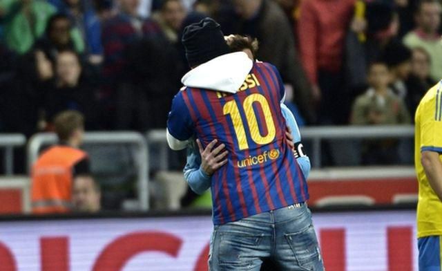 Messi tentoraz neskóroval, no mohol sa aspoň "tešiť" z vrúcneho objatia a bozkov od fanúšika v barcelonskom drese svojho miláčika s číslom desať, ktorý za ním prišiel na ihrisko napriek tomu, že usporiadatelia sa snažili ustrážiť trávnik pred návštevou divákov z tribún.