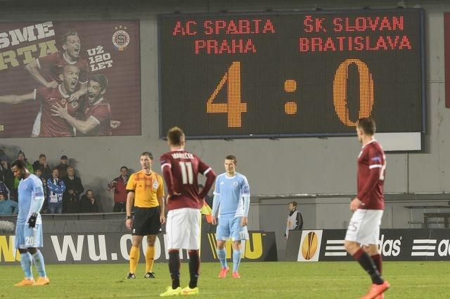 Futbalistom slovenského majstra ŠK Slovan Bratislava sa ani vo svojom štvrtom vystúpení v skupinovej fáze Európskej ligy UEFA nepodarilo bodovať, čo je ale horšie, „belasí“ opäť nedokázali skórovať a od Sparty Praha dostali na Letnej latu v pomere 0:4! V I-skupine európskej pohárovej súťaže číslo 2 je Slovan na absolútnom dne a s katastrofálnym skóre 0:14.