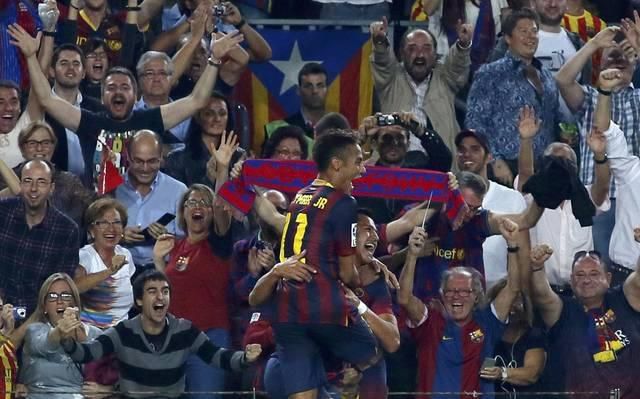 Domácimi hrdinami súboja sa stali Brazílčan Neymar a Čiľan Alexis Sánchez, ktorí sa postarali o presné zásahy Kataláncov. V zápase sa gólovo nepresadili najväčšie hviezdy oboch tímov Lionel Messi a Cristiano Ronaldo, oboch však bolo na trávniku riadne vidieť.Skóre v prospech oveľa efektívnejších Kataláncov otvoril na Camp Nou v 19. min Brazílčan Neymar, pre ktorého to bolo prvé "El Clásico" v kariére. Brazílčan dostal loptu na ľavú stranu pokutového územia od Iniestu a jeho tečovaná strela skončila v bránke. Real sa snažil o vyrovnanie, najbližšie k tomu mal Karim Benzema, ktorý trafil osemnásť minút pred koncom brvno. Po chvíli poslal Neymar pas na Alexisa Sáncheza, ten síce mal problém s obranou, ale dokázal spoza šestnástky prelobovať brankára Diega Lópeza. Realu sa napokon podarilo streliť gól v závere, keď po rýchlom protiútoku našiel Cristiano Ronaldo voľného 20-ročného Jesého Rodrígueza a ten z hranice šestnástky prestrelil Víctora Valdésa.Za Real druhý raz od svojho nákladného letného príchodu z Tottenhamu Hotspur nastúpil v základnej zostave Gareth Bale, ale waleskému krídelníkovi sa príliš nedarilo a na trávniku pobudol iba do 61. min, keď ho nahradil Francúz Benzema. Líder ligy Barcelona má pred najväčším rivalom už 6-bodový náskok. "Biely balet" je tretí v tabuľke, jeho mestský rival Atlético zaostáva z druhej pozície za Barcou o 4 body."Mám veľkú radosť z víťazstva, troch bodov a samozrejme i môjho gólu. Každý futbalista chce hrať v tomto stretnutí. Ja pôjdem domov veľmi spokojný. Pri góle som nemal veľmi na výber. Videl som, že brankár je trocha vonku z bránky, tak som sa pokúsil prelobovať ho. Mal som i šťastie, že som skóroval," povedal v pozápasovom televíznom rozhovore Alexis Sánchez.