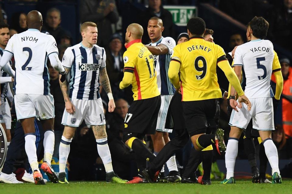 V 84. minúte sa strhla na ihrisku potýčka, ktorú odštartovala konfrontácia ofenzívneho stredopoliara Watfordu Roberta Pereyru s krídelníkom WBA Jamesom McCleanom. Informáciu priniesla agentúra DPA.