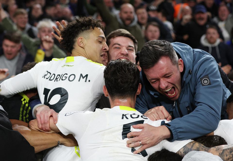 Góly: 26. Castro, 45.+11 Trincao - 63. Harrison, 66. Rodrigo, 90.+1 Ayling