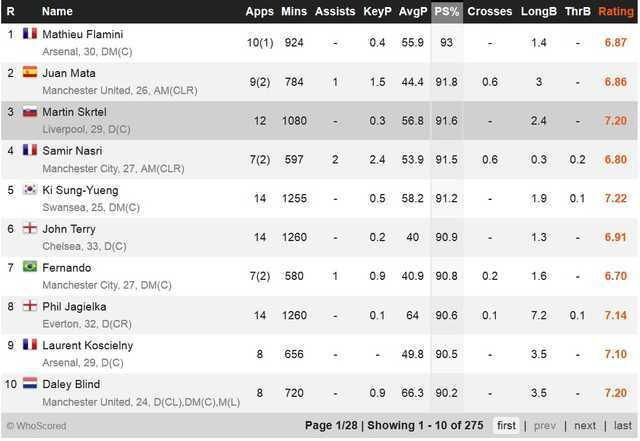 V úspešnosti prihrávok je na treťom mieste, prekonali ho iba Španiel Juan Mata a Francúz Mathieu Flamini.
