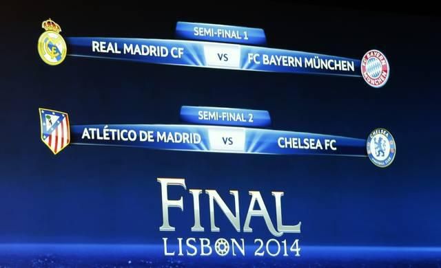 Rozhodol o tom piatkový žreb v sídle Európskej futbalovej únie (UEFA) vo švajčiarskom Nyone. Prvé zápasy semifinále kontinentálneho pohára číslo jeden sú na programe 22. a 23. apríla, odvety o týždeň neskôr 29., resp. 30. apríla. Finále sa uskutoční v sobotu 24. mája na Estádio da Luz v portugalskom Lisabone.