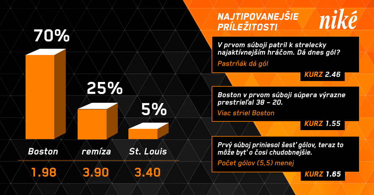 Druhým dejstvom v noci zo stredy na štvrtok pokračuje finálová séria hokejovej NHL medzi Bostonom a St. Louis. Po prvom stretnutí na ľade Bostonu sa v nej „medvede“ ujali vedenia po triumfe 4:2.