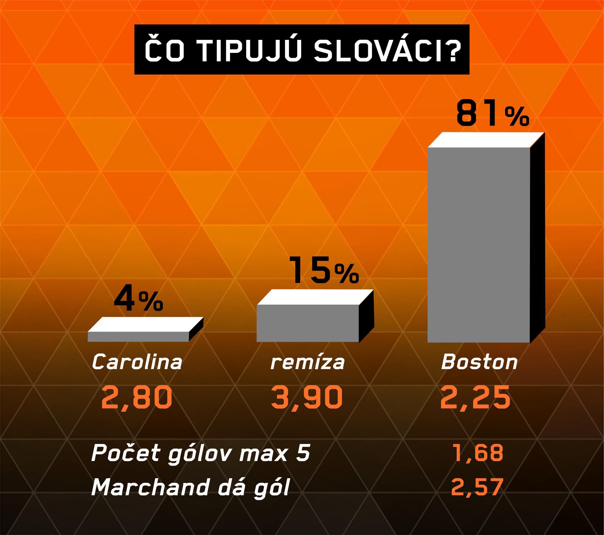 Boston vedie v sérii nad Carolinou 2:1 na zápasy, no všetky tri stretnutia boli nesmierne vyrovnané. Boston najprv vyhral 4:3 po predĺžení, potom prehral 2:3 a naposledy zvíťazil 3:1, keď posledný gól dával v závere do prázdnej brány. Aj teraz to môže byť veľmi vyrovnané, no o niečo väčšia kvalita je na strane Bostonu. Najrozumnejšie by bolo zvoliť tip X2.