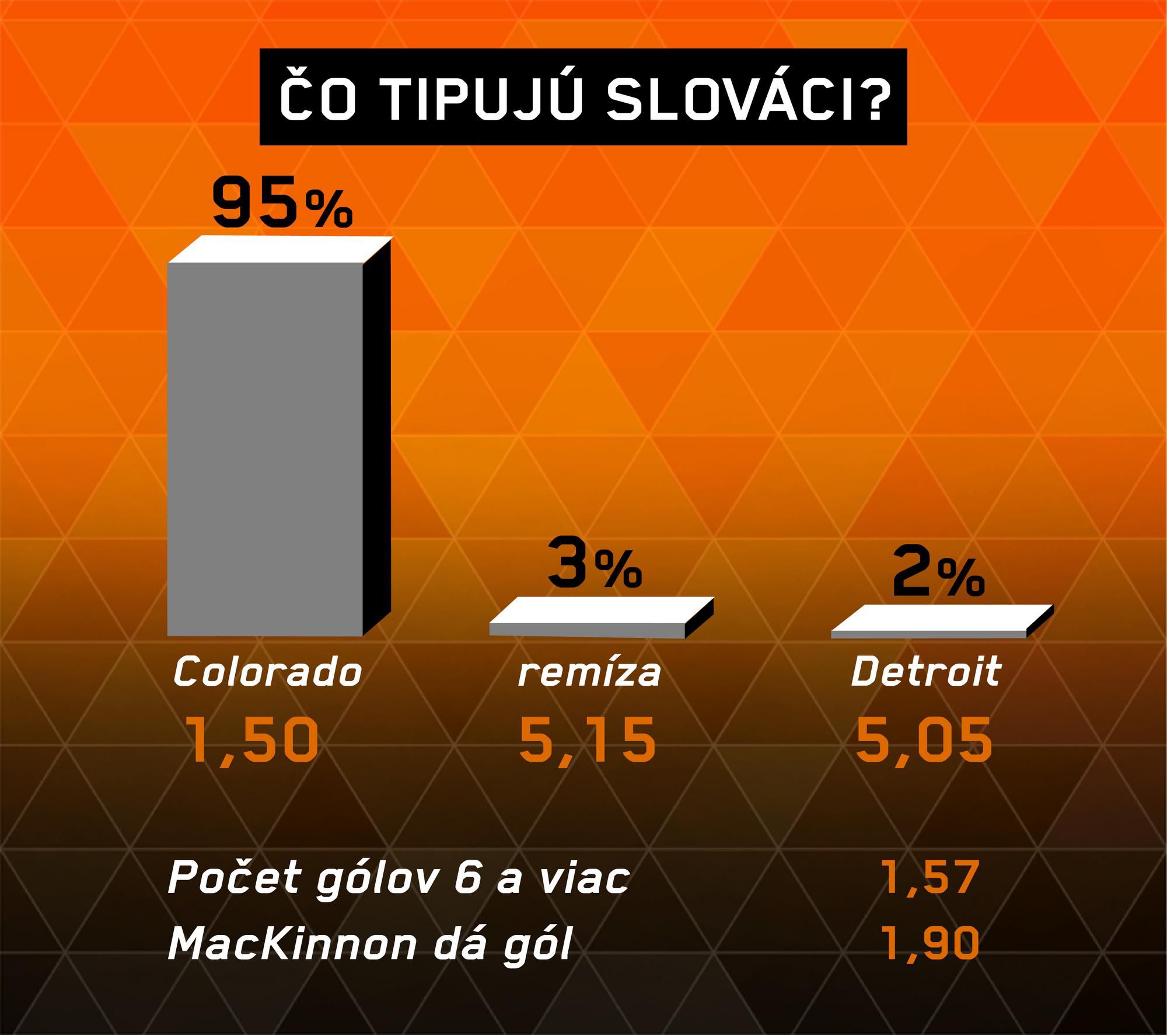 Jasným favoritom stretnutia niekdajších nezmieriteľných rivalov je domáce Colorado. Vzhľadom na gólové štatistiky oboch tímov dávame do pozornosti aj stávky na väčší počet strelených gólov Colorada ako 3,5 a menší počet strelených gólov Detroitu ako 2,5.