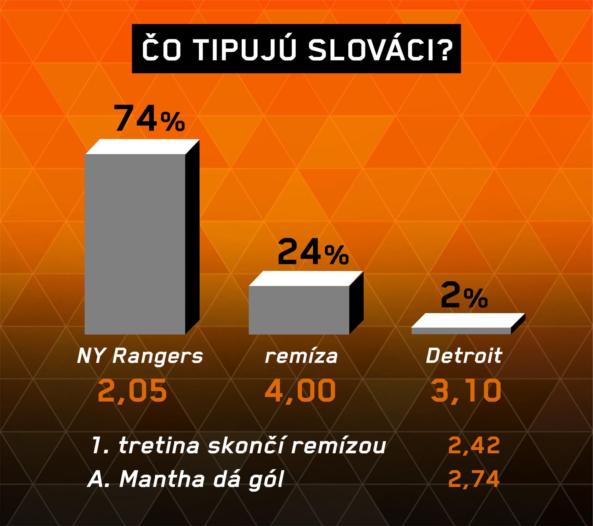 NY RANGERS – DETROIT X Počet gólov menej ako 4,5 Presný výsledok 2:2
