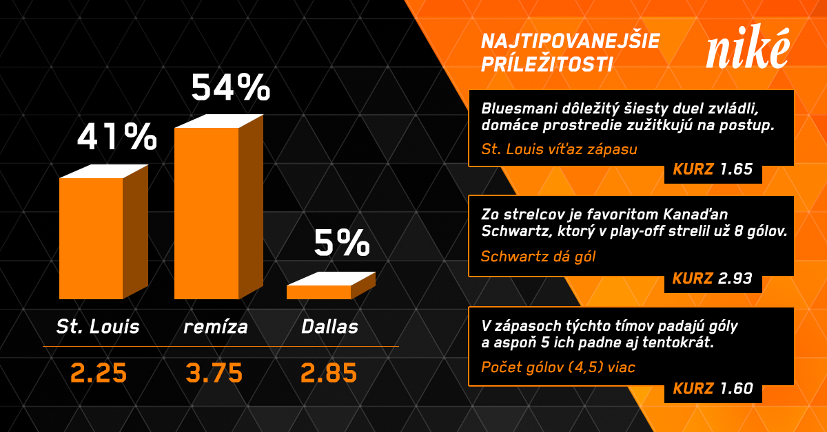 St. Louis má v rozhodujúcom súboji výhodu domáceho prostredia aj keď viac sa mu darí vonku, malo by túto konfrontáciu zvládnuť a postúpiť ďalej. Opak by bol pre nás prekvapením.