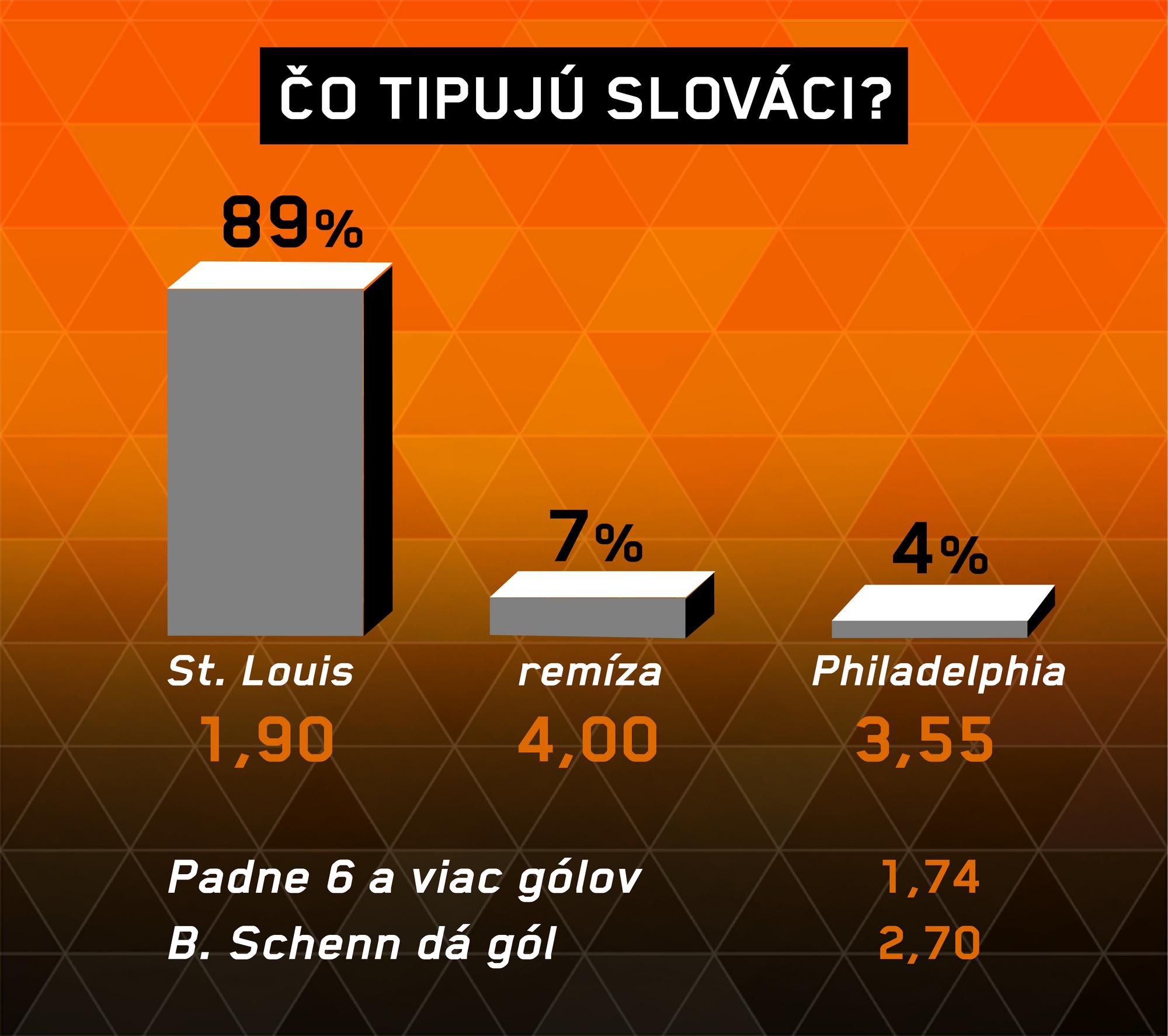Aj keď vo výsledkoch Philadelphie je v posledných dňoch badať zlepšenie, tak vo víťaznom ťažení by malo pokračovať St. Louis. Najproduktívnejší muž a najlepší strelec domácich David Perron síce naposledy vyšiel gólovo naprázdno, no predtým skóroval v štyroch súbojoch v rade.