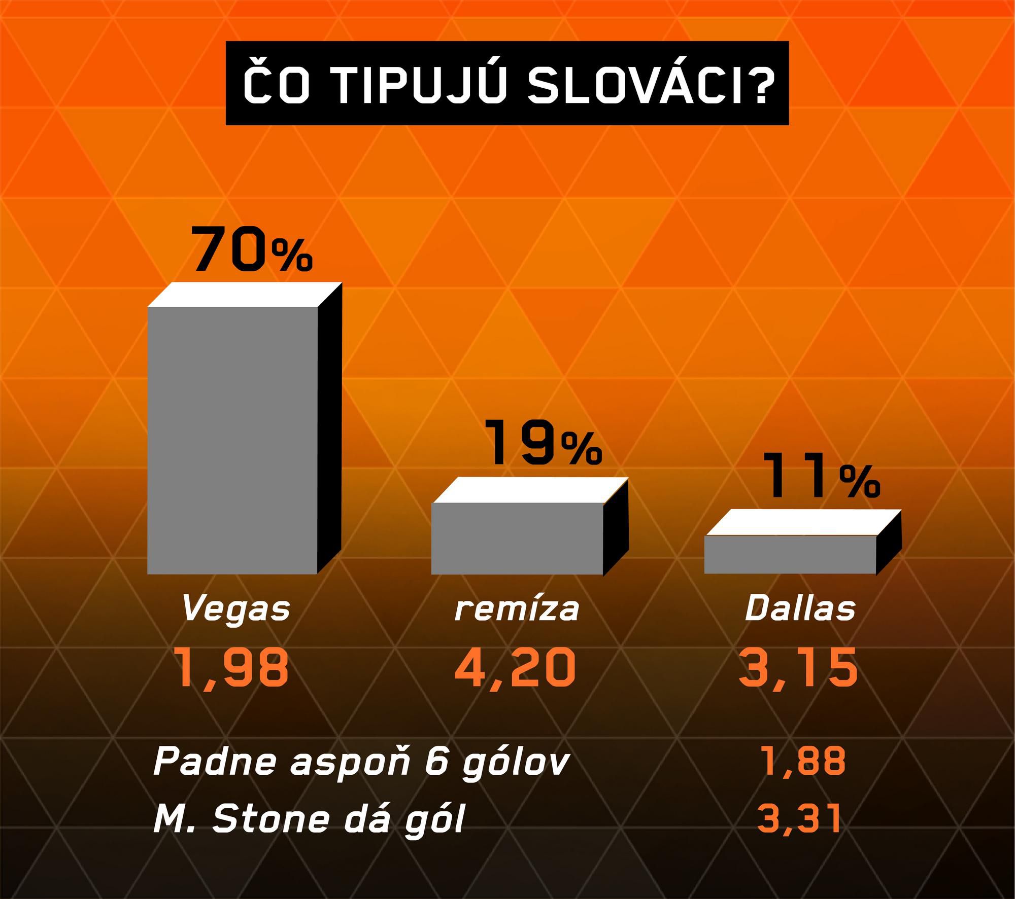 Prvý duel finálovej série Západnej konferencie však priniesol z pohľadu Dallasu zase inú štatistiku, keď v ňom triumfoval najtesnejším výsledkom 1:0. Úvodný a zároveň jediný gól pritom padol už v tretej minúte stretnutia. V tejto sérii očakávame veľmi dlhý a vyrovnaný boj, v ktorom dávame, aj napriek úvodnému nezdaru, stále väčšie šance hráčom Vegas. Tí v druhom zápase stav série vyrovnajú.