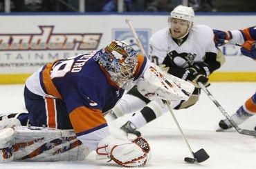 Rick DiPietro, brankár aktuálne druhého najslabšieho tímu zámorskej hokejovej NHL New York Islanders, <a href="http://sport.aktuality.sk/clanok/105256/video-noc-bez-slovenskeho-bodu-a-koniec-dlhej-serie/" target="_blank">"odstrihol" v stredu večer</a> rekordnú bodovú 25-zápasovú sériu útočníka Pittsburghu Penguins Sidneyho Crosbyho. "Tučniaci" zažili na Long Islande veľké sklamanie, keď prehrali 1:2 po samostatných nájazdoch.