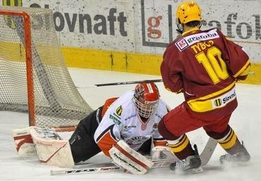 Dukla Trenčín v 50. kole hokejovej Slovnaft extraligy zdolala Banskú Bystricu 4:1. Chlieb sa lámal predovšetkým v tretej tretine, kedy padli štyri góly.