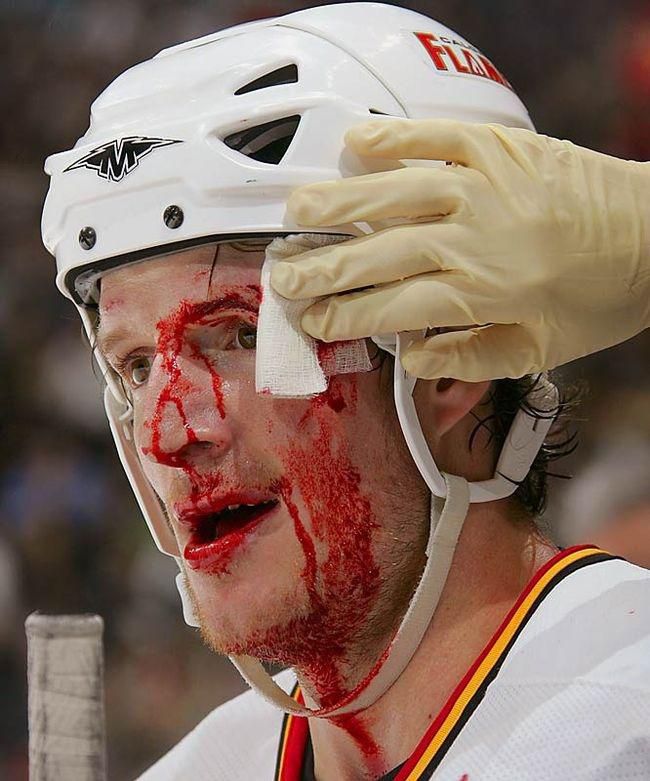 Útočník Calgary Flames pred piatimi rokmi v súboji s Vancouverom Canucks pocítil na vlastnej tvári riziká hry so zdvihnutou hokejkou. Krv musel mať až v suspenzore.