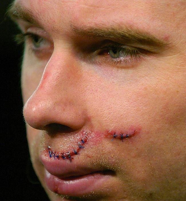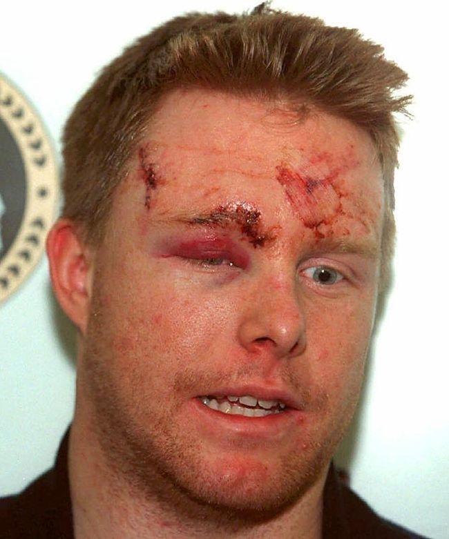 Takéto stehy si odniesol center Ottawy Senators v roku 2004 z prvého kola play-off proti Torontu Maple Leafs. "Javorové listy" mali vtedy v tíme poriadne tvrdých chlapov.