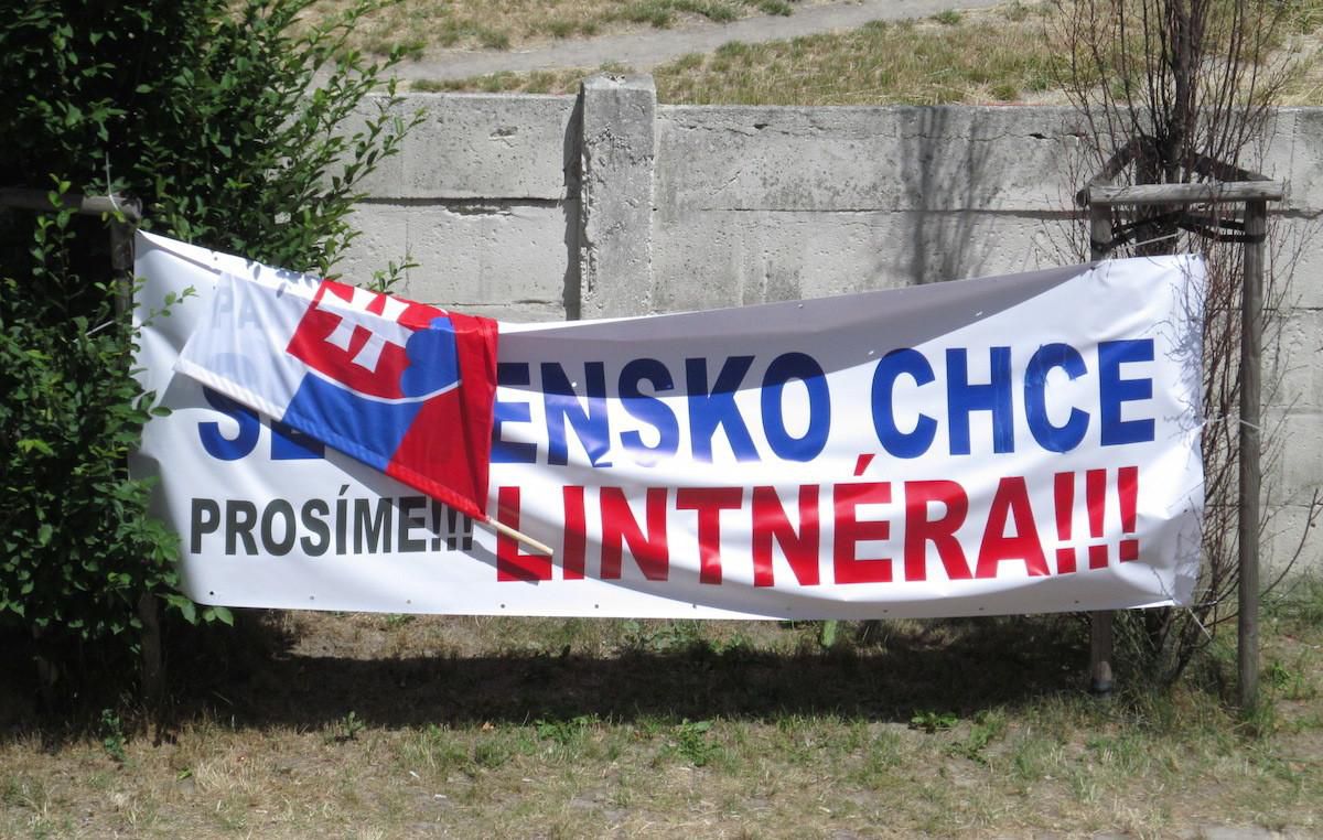 Pred hotelom DoubleTree by Hilton od včera visia nápisy s heslami „Slovensko chce Lintnera“ alebo „Nemeček odstúp!!!“. Na protest malo prísť podľa slov prítomných viac ako sto ľudí, no okolnosti spôsobili, že je ich pred hotelom len hŕstka.