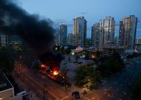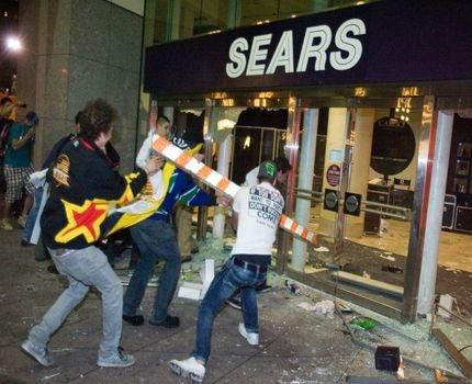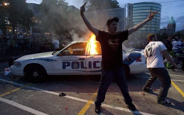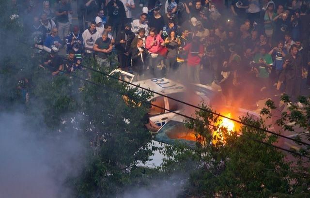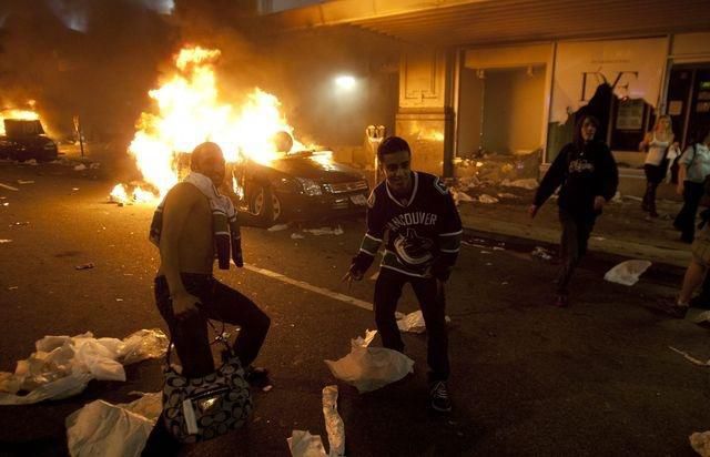 Ulice Vancouveru pocítili tvrdé emócie nešťastných a zúrivých fanúšikov porazených kosatiek.