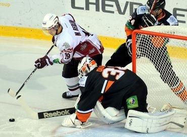 Góly : 20. Nagy, 23. J. Mikúš (Špirko, Hunkes), 53. J. Mikúš (Mezei, Netík) - 14. Varg (Galvinš), 25. Sprukts (Karsums, Galvinš), 33. Karsums (Galvinš, Sprukts), 56. Galvinš (Sprukts, M. Redlichs), 60. KarsumsRozhodcovia: Semenov, Gofman - Birin, Medvedev, vylúčenia: 6:4, navyše Niživij (Riga) osobný trest 10 min, presilovky : 0:4, oslabenia : 0:0, 4395 divákov Zostavy HC Lev : Duba - Mezei, Pilař, Sigalet, Hunkes, Klouček, Lewis - Nagy, Nedorost, Bartečko - Netík, J. Mikúš, Špirko - Chabada, Kristek, Rudolf Huna - Fabricius, Lundberg, DaSilvaRiga: Holt - Galvinš, K. Redlichs, Ozolinš, J. Redlichs, Sotnieks, Rekis - Karsums, Sprukts, M. Redlichs - Lundmark, Varg, Cipulis - Niživij, Šindel, Meja - Podzinš, Lucenius, Ankipas
