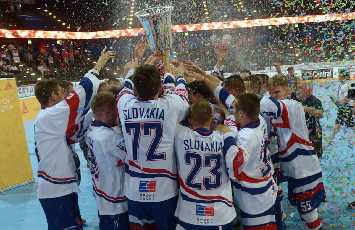 Slovenskí hokejbaloví reprezentanti obhájili na MS vo švajčiarskom Zugu zlaté medaily. V nedeľňajšom finále triumfovali nad výberom USA 4:3 po predĺžení a obhájili tak titul svetových šampiónov spred dvoch rokov z Kanady.