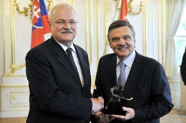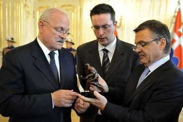 Prezident SR Ivan Gašparovič s manželkou prijali v stredu dopoludnia vo Veľkej sále Prezidentského paláca 51-člennú delegáciu Medzinárodnej hokejovej federácie IIHF na čele s jej šéfom René Faselom.