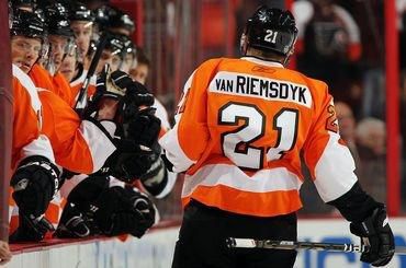 V utorňajšom dueli NHL na ľade Tampy Bay sa hokejistovi Philadelphie Jamesovi Van Riemsdykovi podarilo skompletizovať takzvaný hetrik Gordieho Howea, teda streliť gól, na jeden prihrať a ešte absolvovať pästný súboj.