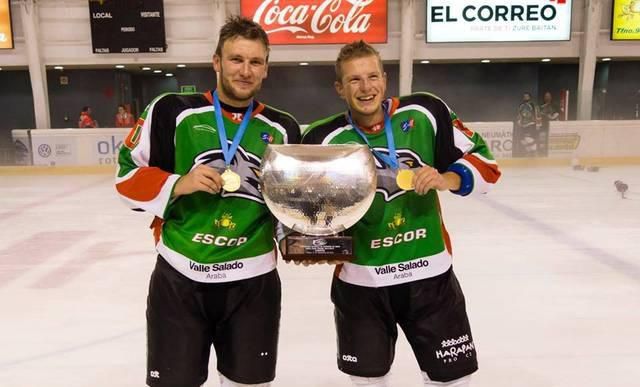 Slovenskí hokejisti Michal Klepáč (24) a Miroslav Oravec (26) sa stali pred pár dňami s tímom CD Hielo Bipolo Vitoria-Gasteiz majstrami Španielska.