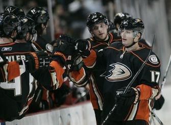 Góly : 13. VIŠŇOVSKÝ (Getzlaf, Lydman), 37. Sexton (B.McMillan, VIŠŇOVSKÝ ), rozhodujúci sam. nájazd Perry - 47. O. Jokinen (Giordano, Iginla), 54. Moss (Iginla, Giordano)Vylúčení : 6:5 na 2 min, presilovky : 0:1, oslabenia : 0:0. Strely na bránku : 25:39, brankári : Hiller - H. Karlsson. Diváci : 13 775.