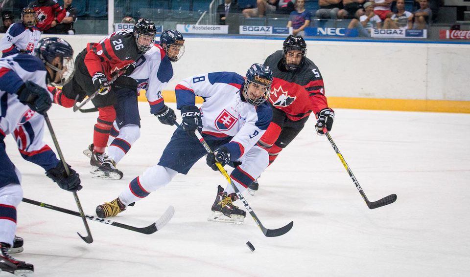 Slovenskí hokejoví reprezentanti do 18 rokov prehrali vo svojom úvodnom zápase B-skupiny na medzinárodnom turnaji Memoriálu Ivana Hlinku v Bratislave s favorizovanou Kanadou 2:3 až po predĺžení.
