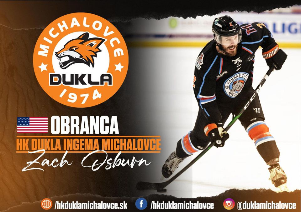 Americký hokejový obranca Zach Osburn bude v novom ročníku hrať v najvyššej slovenskej súťaži v drese HK Dukla Ingema Michalovce. Klub o tom informoval na sociálnych sieťach.