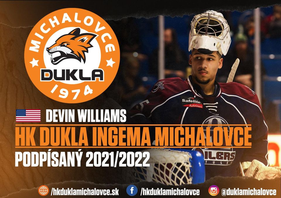 Extraligový klub HK Dukla Ingema Michalovce angažoval 25-ročného amerického brankára Devina Williamsa. Jeho príchod je reakcia vedenia Dukly na ukončenie spolupráce s fínskym brankárom Juliusom Pohjanoksom. Klub o tom informoval na sociálnych sieťach.