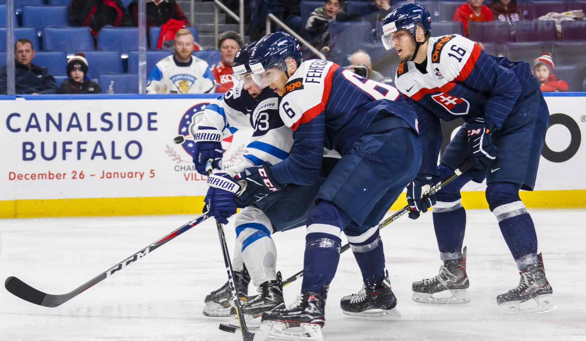 Slovenskí hokejisti prehrali v sobotňajšom zápase A-skupiny na juniorských MS s Fínskom 2:5. Po vyrovnanej prvej tretine si Fíni vypracovali v druhom dejstve jednogólový náskok, ktorý v treťom ešte zveľadili.