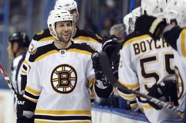 Góly: 10. Krejčí (Ryder, Seidenberg), 28. Lucic (Krejčí), 40. ŠATAN (CHÁRA, P. Bergeron), 42. Begin (Lucic)Vylúčení: 2:2 na 2 min, navyše: Boulton - S. Thornton, presilovky a oslabenia: 0:0Strely na bránku: 27:33, brankári: Hedberg - Rask, diváci: 14 042