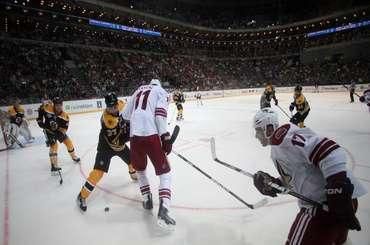Hokejisti Phoenix Coyotes vyhrali v úvodnom zápase sobotňajšieho programu zámorskej profiligy v rámci NHL Premiere v Prahe nad Boston Bruins 5:2. Phoenix išiel v 8. min po góle Radima Vrbatu do vedenia, čo bolo dôležité pre ďalší vývoj zápasu.