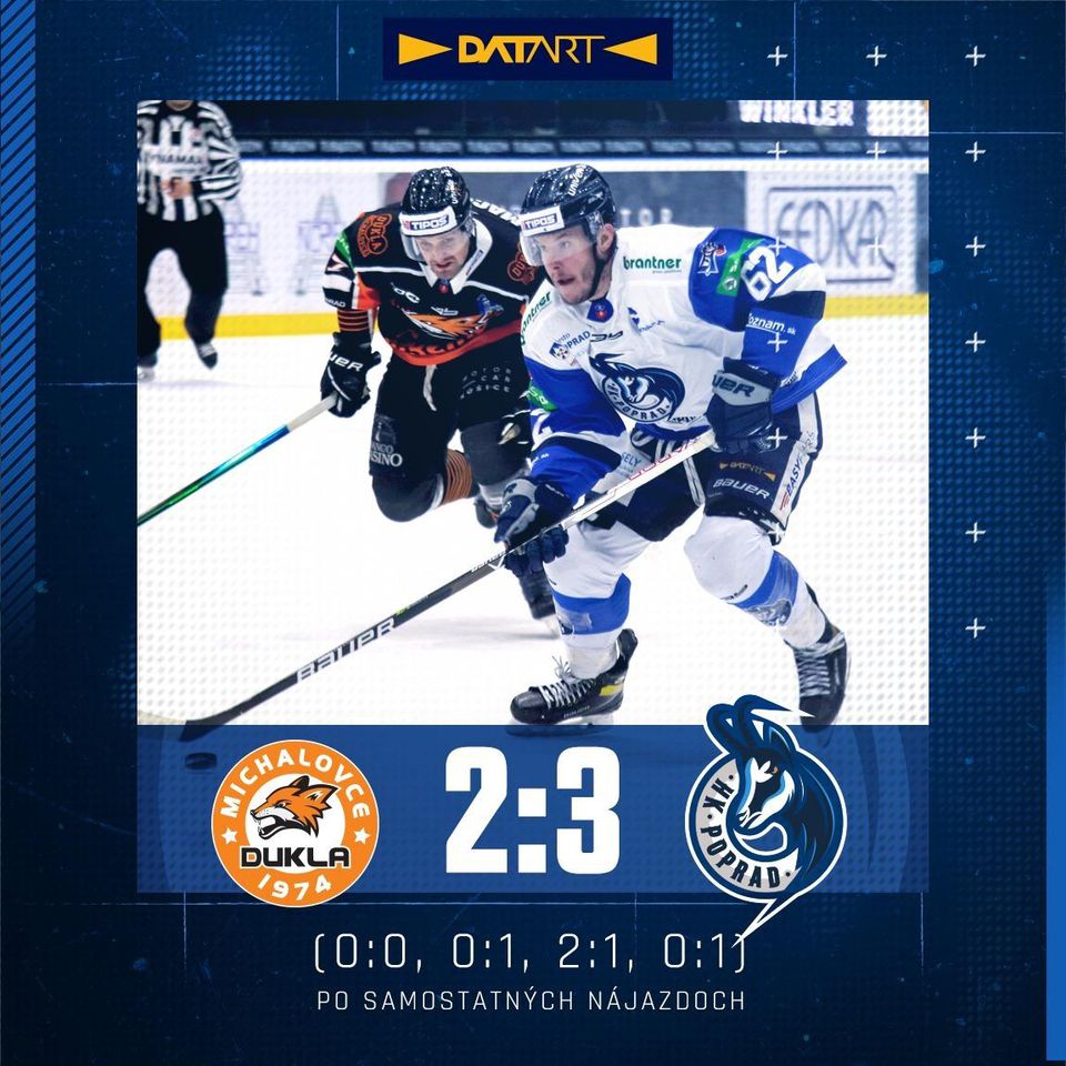 HK Dukla Ingema Michalovce - HK Poprad 2:3 pp a sn (0:0, 0:1, 2:1 - 0:0, 0:1)