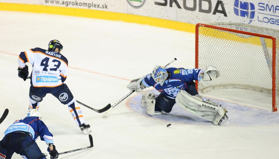 Pätnásť sekúnd pred koncom druhej časti stretnutia sa však dostal do brejku Bartoš a po nevydarenom blafáku puk predsa len prešiel za Valentov chrbát.