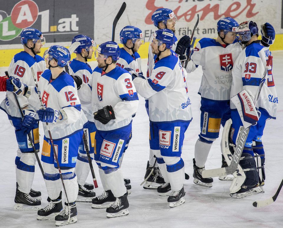 Reakcie slovenských hokejistov po druhej výhre nad reprezentáciou Rakúska.