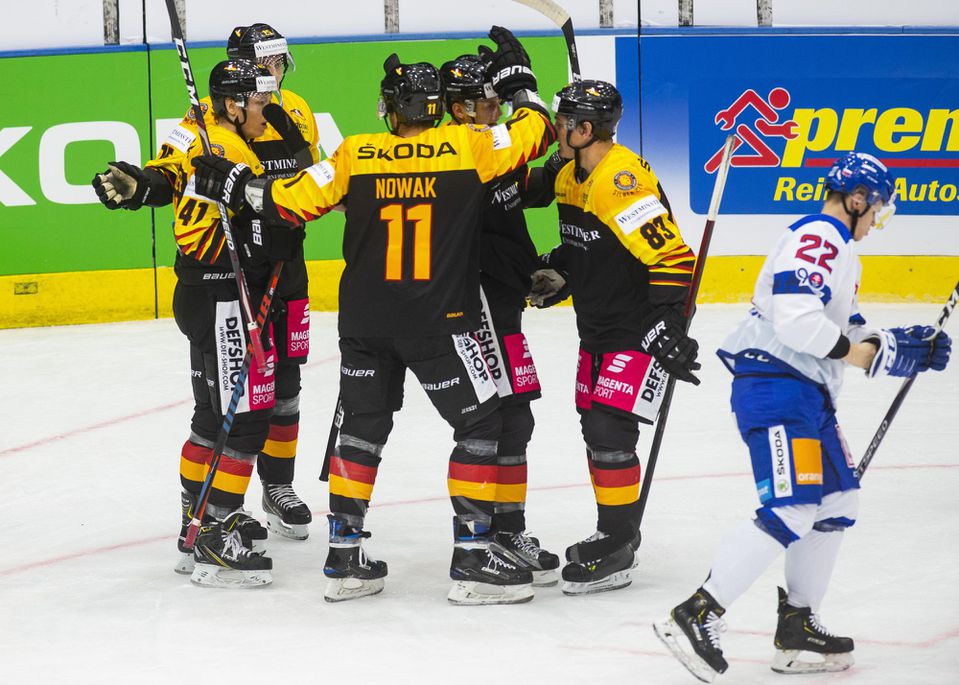 Nemecko: Treutle - Daschner, Schopper, Nowak, J. Müller, Wagner, Weber, Bittner, Krupp - Pföderl, Loibl, Bergmann - Bokk, Michaelis, Tuomie - Ziegler, Fauser, Wohlgemuth - Elsner, Noebels, Höfflin - Kurth
