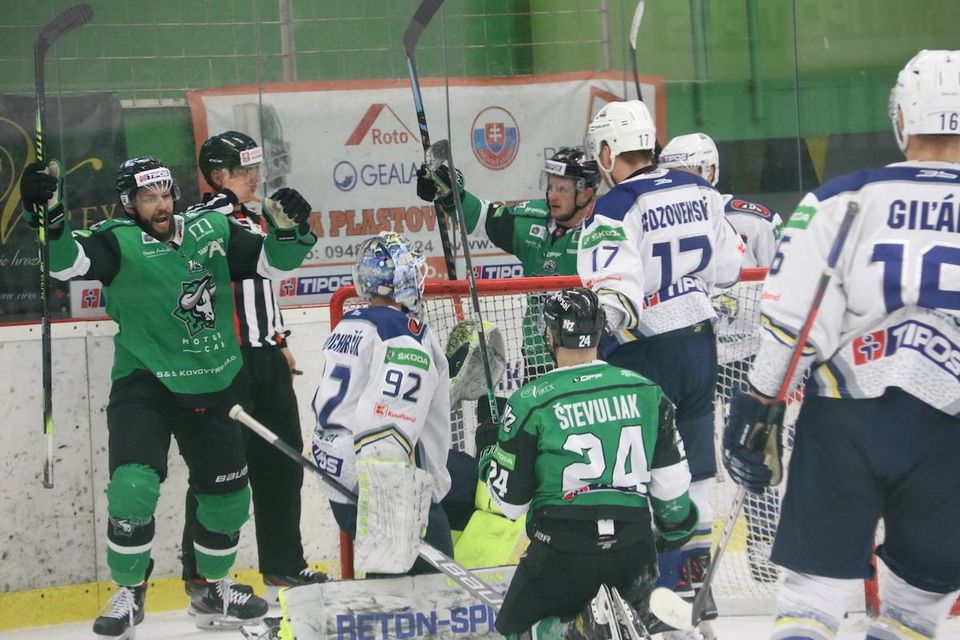 Spišiaci mali za sebou dva víťazné zápasy a lepšie začali aj na juhozápadnom Slovensku. Ahström v 13. min vyhral súboj za bránkou súpera, efektnou zadovkou našiel Salitura a ten zoči-voči Bakalovi nezaváhal. Vyrovnania sa domáci dočkali až v polovici stretnutia, brankár Bakala rozohral rýchlu akciu, po ktorej sa sám pred Melicherčíkom ocitol Števuliak a pretlačil puk do siete. Gól musel posvätiť videorozhodca, pretože aktéri súboja posunuli bránku.