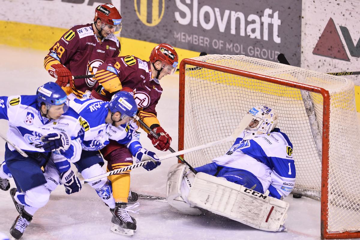 Hostí tento moment nabudil. V 33. min mal vyrovnanie na hokejke Heizer, puk za bránkovú čiaru pretlačiť nedokázal. Päť minút pred druhou sirénou Gašparovič našiel voľného Melicháreka. Najlepšieho strelca Dukly vychytal Kostúr. Podobne na opačnej strane dopadol aktívny Heizer. Záver tretiny divákov viackrát zdvíhal zo sedadiel, ale ďalšie góly už nepriniesol.