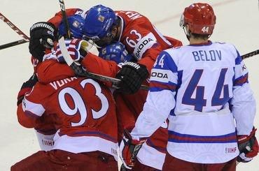Góly: 15. Voráček (Rolínek, Škoula), 16. Jágr (Plekanec), 44. Plekanec (tr. strieľanie) - 32. Tereščenko (Aťušov, Radulov), 56. Zaripov (Kalinin, Zinovjev)Rozhodcovia: Reiber (Švaj.), Sterns (USA) - Arm (Švaj.), Deďulja (Biel.), vylúčení: 4:8 na 2 min., presilovky: 0:1, oslabenia: 0:0, 9322 divákov (vypredané)