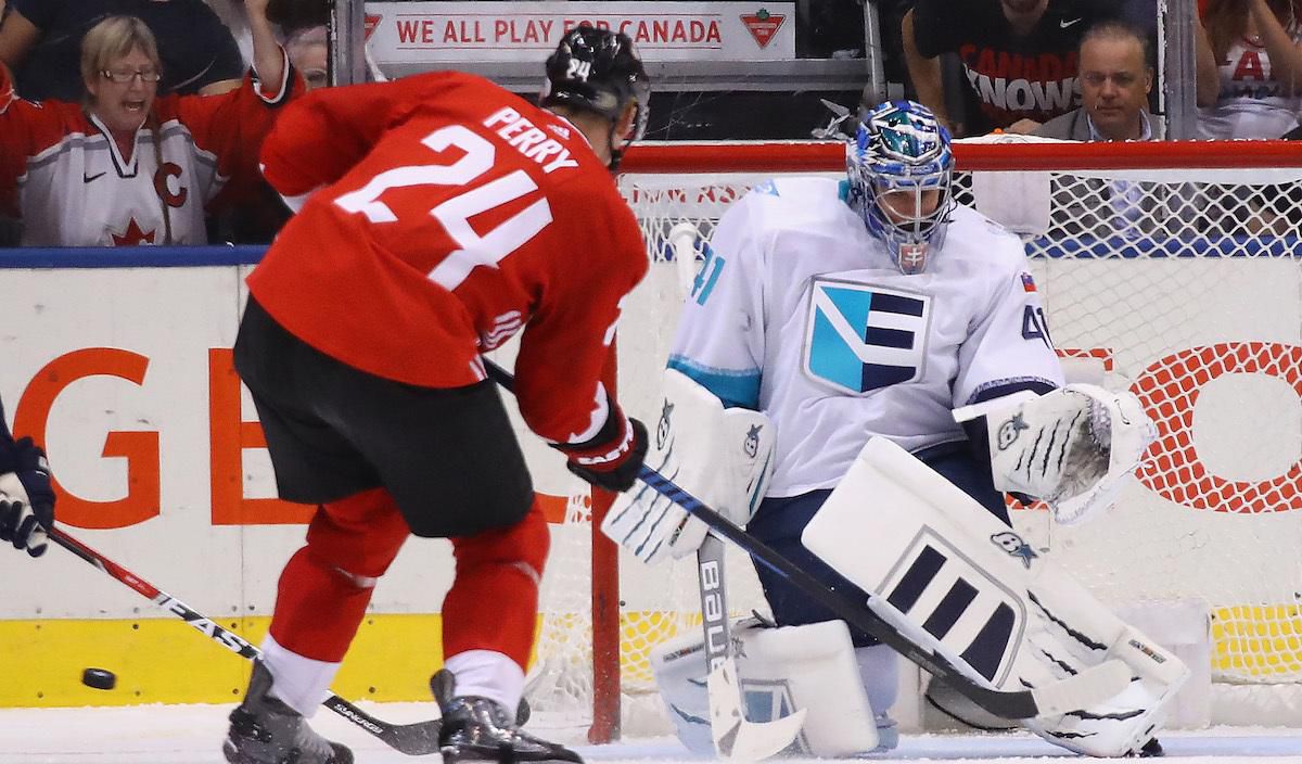 Tím Európy sa už s Kanadou na turnaji stretol. Na prvý pohľad prehra zo základnej skupiny 1:4 pôsobí jednoznačne, ale domáce mužstvo ovládlo zápas po dvoch smolných situáciách. Najprv išlo o zbabranú rozohrávku Jaroslava Haláka , ktorý naservíroval puk priamo forčekujúcemu Ducheneovi na ľavom mantineli, ten ho posunul na hokejku Toewsa a bolo 2:0. V druhej tretine sa potom na modrej dostal k puku Josi, no Švajčiar po strele príklepom zlomil hokejku a Toews v prečíslení s prehľadom prekonal Haláka, aby stanovil skóre na 3:1.