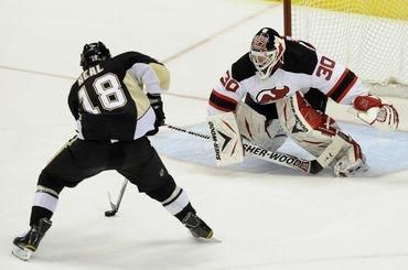 V Pittsburghu dominovali gólmani a tak rozhodli o výhre tučniakov nad New Jersey Devils 1:0 až samostatné nájazdy. V nájazdoch bol úspešný jediný hráč James Neal. V bránke domácich vychytal Marc-Andre Fleury tretie čisté konto v sezóne a celkovo 19. v kariére, pričom jeho skúsenejší protipól Martin Brodeur zatiahol rolety v 116. zápase v kariére a po šiesty raz v sezóne. Brodeur zneškodnil 26 striel, pričom v samostatných nájazdoch vychytal Alexeja Kovaľova a Kris Letang minul bránku.
