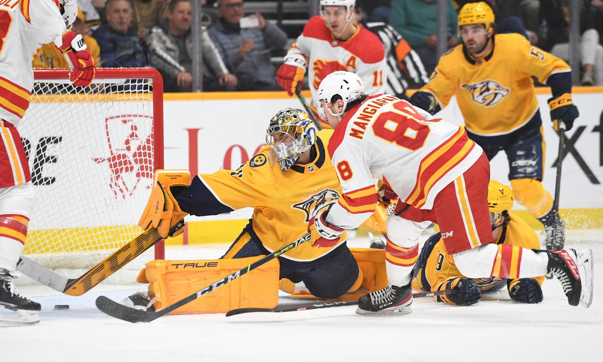 Nashville doma zdolal Calgary 3:2 po nájazdoch. Domáci útočník Matt Duchene zaznamenal 40. gól v sezóne, úspešne tak oslávil 900. štart v profilige: „Tak to je naozaj skvelé, že sa mi to podarilo práve v 900. zápase. Diváci boli skvelí, mal som zimomriavky.“