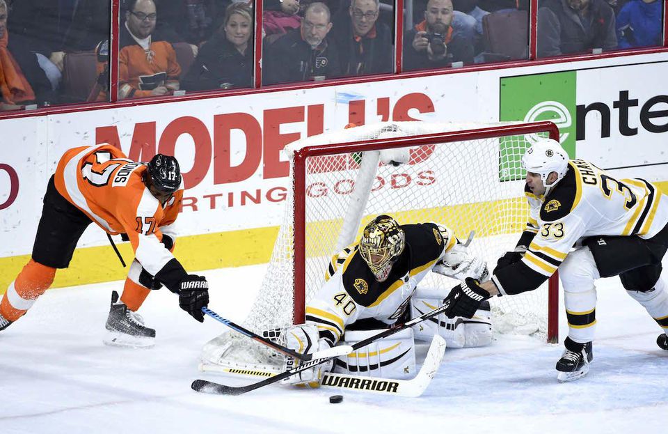 Góly: 24. Simmonds (Schenn, Gostisbehere), 53. Simmonds (Voráček, Del Zotto) - 6. Bergeron (Spooner, Krejčí), 18. Marchand (CHÁRA, C. Miller), 59. Connolly (CHÁRA, K. Miller). Brankári: Neuvirth - Rask, strely na bránku: 36:31, 19.738 divákov.