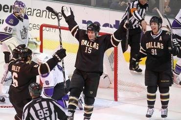 Góly : 32. L. Eriksson (B. Richards, Ribeiro), 37. Langenbrunner (B. Richards, Benn) - 8. J. Williams (Kopitar). Vylúčení : 2:5, presilovky : 2:0, oslabenia : 0:0. Strely na bránku : 27:24. Brankári : Lehtonen - Bernier. Diváci : 14 163.